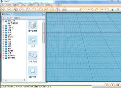 2011/11/29 Category : その他の3Dゲーム ViZiMO セカンドライフのように自分で3D空間を作る事が出来るオンラインゲーム「ViZiMO」をプレイしてみました。セカンドライフのように細かい事はできないと思いますが。この6種類から自分のアバターを選択。右下のキャラを選びました。アバターは登録後でも変更できます。続きは長くなるのでたたんでいます。 登録とDLが終わったらツールを起動。左の素材パレットから選んで右のスペースにドラッグ。テキトーに緑の床を設置してプレイヤーの位置を決めます。とりあえずこれで完成。 にしとこうwここまで1時間・・・。道路や木の設置は簡単だけど、細かい素材を組み合わせて家を作るのが一番面倒でした。しかもデフォルトのまま配置してもずれるし合わないし。ちなみに家の中は入れません。作ったフィールドに行ってみた。自分のアバターはキーボードの矢印キーで動かします。しかし動かしにくいー・・・。サイトやツールのDL時もエラーが出たりアバター用のアイテム(服や髪型)が少なすぎます。一応髪の色と目の色は変えたけど。オープンβテスト中だからこんなものなんでしょうか?あとこれもブラウザがIEじゃないと一部見れないコンテンツあります。今はオブジェクトを置いただけですが車を運転してレースやボーリングなどのゲームも作れるようです。自由に仮想空間を作って公開&交流が目的のサイト。がやる事が少ないー。 PR Comment0 Comment Comment Form お名前name タイトルtitle メールアドレスmail address URLurl コメントcomment パスワードpassword