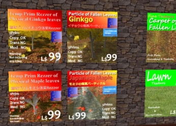 2010/08/03 Category : セカンドライフ 続いてBaioreddo lsland 先ほどのお店を出て、隣のJOJOというお店に入ってみます。ジョジョってあれですか、スタンドとか。線香花火いいな~♪恋人がいれば二人でやってみたいものです。ここは季節のアイテムを売っているお店のようです。これは紅葉やもみじなど秋のアイテムです。土地を綺麗に飾るのにはいいアイテムかもしれません。FREEのアイテムもありましたよ♪ポーズかな?さらにその上にある商品、窓の外で雪が降っているように見えるアイテムが素敵です。本当に雪が降っているようです。続きも長くなるのでたたんでいます。 つづきはこちら