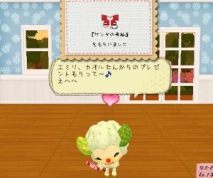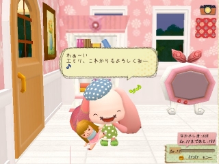 2011/07/01 Category : モネモ~ネ おまかせ訪問 モネモ~ネ、右下に「おまかせ訪問」というボタン。そこをクリックするとランダムで別のプレイヤーのモ~ネの部屋に行くことができます。右上のマロンケーキをクリックすると余所のモ~ネにお菓子をあげる事が出来ると最近気づきました。お菓子をあげるとお礼にアイテムが貰えます。もっと早く気付いとけばよかったな~。貰ったアイテムをいろいろ付けてみます。「デコ」のアイテムは服や帽子、体のあちこちに貼りつけ可能。細かく着せ替えできるのは嬉しいです。しかしミニゲームの飛んでモ~ネでモ~ネの耳(?)の部分に付けたハートが浮いている…。ミニゲーム中、気になって仕方ないので直してほしいな。部屋もだいぶ賑やかになってきました。好きなピンク色に統一したいです!