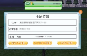 2009/10/22 Category : meet-me 土地探しと着物 どうしても欲しかったのでこの前行った和物専門店で着物を買いました。着替えました。夜なので見えにくいですね、外で着替えるんじゃなかったwすごく可愛いですが、これ走りにくいです。速度も遅いような気がします。(ちょこちょことしか走りません)でも着物だから仕方ないですよね。しかし4000ココアはちょっと痛かったです。しばらくココアは貯金です。あと明日で土地の無料レンタル券が切れるので急いで土地探しをしています。条件は広くて500MP以内、バス停近く。駅の近くの土地は凄く高いので、不便だけど広さと安さを優先しますマイホーム!電車に乗りバスを乗り、地図を見ながらいい土地発見。500MP以内でレンタルできました。そういえばいつのまにかMMPが貯まっています。一部のクリカンではココアでなく、MMPが貰える問題もあるみたいです。それでも二桁で足りないので、アイテムで契約(土地無料券)で契約完了です!次からは家を建てたいと思います。でもどうやるんだろう・・・。
