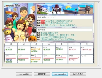 2009/05/16 Category : meet-me meet me 登録 オンラインゲームのmeet meを始めました。まずサイトに行って会員登録、DLをします。アップデートが終わるのに結構長いです。アップデートが終わるとこんな画面が表示されました。meet-meを起動をクリック!するとこんな画面が。受付の人に指示され名前を決め、住所(自分の住む部屋)を教えてもらいました。ふむふむ。meet-meの世界ではバスや電車などの公共機関があるんですね!それからは自分の部屋に移動、容姿を細かく決められます。これはオンラインゲームの楽しみですwまずは顔!とにかく可愛くしたいな。肌の色や目、口、眉の形と細かく決められます。こんな!!顔と首の色が違いすぎるw次は体系、4頭身くらいにしてみました。やろうとおもえば、小人みたいに小さくなったり、巨人のように大きくもできます。肌の色は顔と合わせます。でも微妙に合ってない・・・。次は服装。といっても長袖か、スカートか、程度です。赤いTシャツとジーンズ、ピンクのスニーカーにしました。ちなみに容姿は後でも変更可能だそうです。今度は路線図の案内。各駅にあるチケットを買い、この地図に当てはめるとバスでも行けるとか行けないとか・・・。(よく聞いてなかった)これで説明終了~!そしてこれがマイルーム、郵便受け(?)以外なにもありません。これからコツコツ増やしていきたくなります。外に出てみました。夜中なので真っ暗です。とりあえず今日はここまでで~。 PR