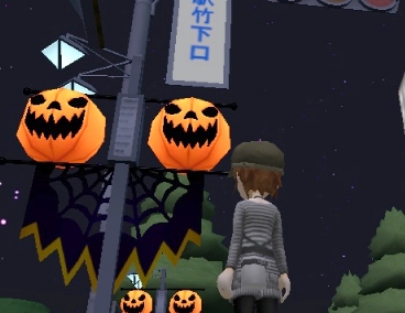 2011/10/28 Category : meet-me ハロウィンナイト 街がハロウィン仕様になりました。カボチャの街頭可愛いね!赤羽駅前の巨大カボチャ。お台場やメタポリスにも巨大カボチャが設置してあります。このカボチャの前で「ハロウィンナイト」と言うと不思議な事が起こるとか。ナイト伯爵登場。そこはナイト(騎士)とかじゃないの・・・(・ω・`)ハロウィンだから伯爵でいいのか。ナイト伯爵がmeet-meの夜を不思議な世界にしてくれるそうです。景色が一変、画面が紫調に。ちょっとどうしてくれるのナイト伯爵!?この後ウッカリ「帰宅」ボタンを押してしまい数分でハロウィンナイト終了。ハロウィンナイトは10月31日朝まで、詳しくはmeet-meの公式ページこちらで。トレボで40万で売られていたので即購入。COSU MODE POWERの「Police」です。格好良くて欲しいな~と思っていたのでラッキーでした。 腰には手錠、格好いいです。Policeの警棒欲しいなあ、でも警棒だけで500円てちょい高い。どうせなら「Kimono」のパンプスか「Maid」の日傘欲しいなあ。あとPoliceっぽいセクシーなアニメーションパッチ欲しい!