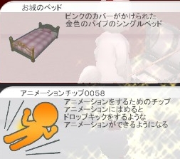 2011/02/02 Category : meet-me 金箱と銀箱 銀の宝箱と久しぶりに金の宝箱を発見しました。上が銀箱からでたお城のベッド、下が金箱からでたアニメーションチップ。またアニメーションチップ…、せっかく金箱なのに。でもお城のベッドは豪華で可愛いので気に入りました。せっかくなので手に入れたチップを使ってみました。ドロップキックができると書いてるのに何度やっても一回転するだけ、場所が悪かった?続きは長くなるのでたたんでいます。 つづきはこちら PR