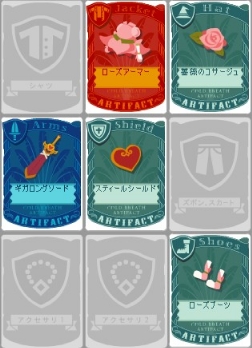 2010/06/04 Category : パペットガーディアン&マジカロス パペットガーディアン かなり前からすごろくのようにサイコロを回してダンジョンを進むパペットガーディアンやっています。今装備しているアイテムです。やはりピンクが好きなので、ピンクのアイテムを中心に材料を集めて作っています。ギガロングソードもやっと完成、でも攻撃力はまだ6。ギガロングソードから1つ上のセントロングソードにするため鉄鉱石を集めています。まず鉄鉱石10個でロングソード。ロングソード5本でハイロングソード。ハイロングソード5本でゾアロングソード。ゾアロングソード5本でギガロングソードになります。ダンジョン1回で取れる鉄鉱石は多くて10個以内。一日で溜まるサイコロを振れる数は6回。数えると気が遠くなります・・・。